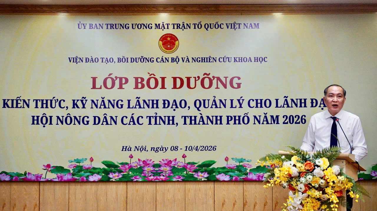 Ngày 8/4, tại Hà Nội, Viện Đào tạo bồi dưỡng cán bộ và Nghiên cứu khoa học tổ chức khai giảng lớp “Bồi dưỡng kiến thức, kỹ năng lãnh đạo, quản lý cho lãnh đạo Hội Nông dân các tỉnh, thành phố năm 2026” với sự tham dự của hơn 100 học viên.