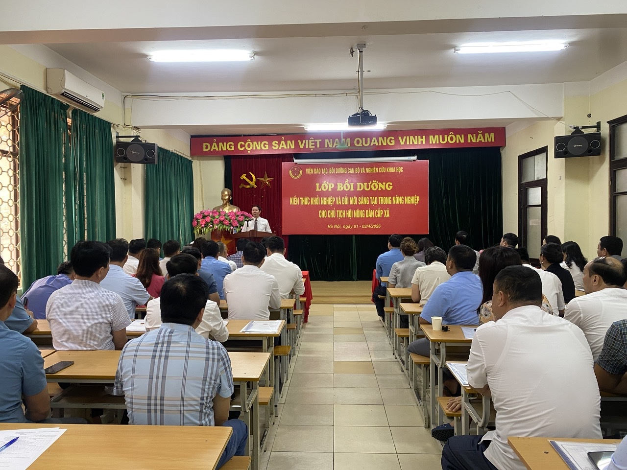 Từ ngày 01 đến ngày 03/4/2026, tại Hà Nội, Viện Đào tạo, Bồi dưỡng Cán bộ và Nghiên cứu khoa học - Cơ quan Ủy ban Trung ương MTTQ Việt Nam đã tổ chức thành công lớp “Bồi dưỡng kiến thức về khởi nghiệp và đổi mới, sáng tạo trong nông nghiệp” cho 68 học viên là Chủ tịch Hội Nông dân cấp xã đến từ 17 tỉnh, thành phố khu vực phía Bắc.