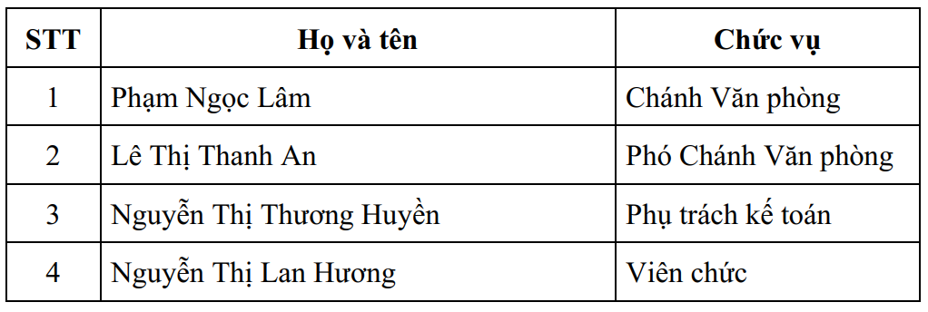 Danh sách cán bộ viên chức
